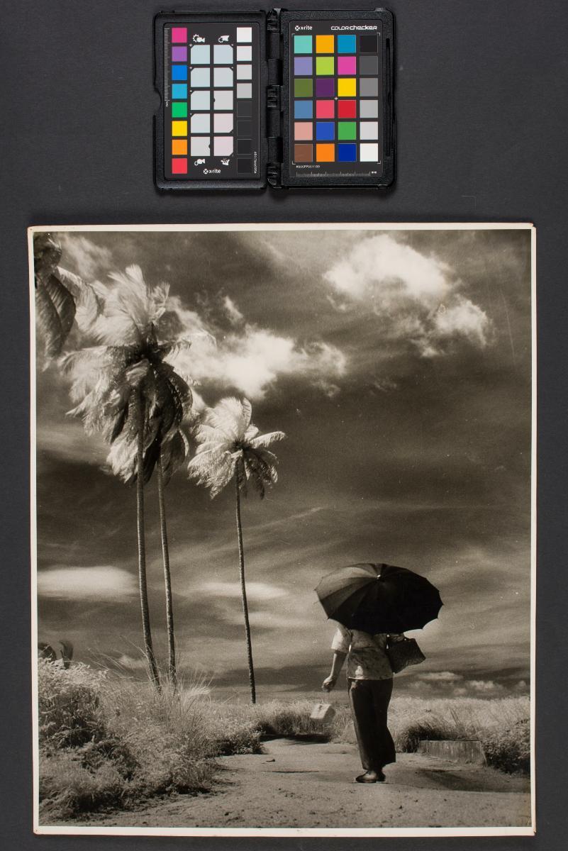 Born in Guangdong Province, China, Chen Chong Swee (1910-1985) came to Singapore in 1931 shortly after graduating from Xinhua Academy of Art, Shanghai. He co-founded the Salon Art Society (now the Singapore Society of Chinese Artists) in 1935 and was a teacher with Nanyang Academy of Fine Arts for over 20 years. In 1952, Chen, together with fellow artists Chen Wen Hsi, Cheong Soo Pieng and Liu Kang, went on what would eventually turn out be a historically significant trip to Bali, Indonesia in search of new inspiration and subject matter. As one of the first artists instrumental in developing the Nanyang Style, Chen pioneered attempts to interpret local landscapes according to the Chinese concept of pictorial composition with Western watercolour techniques. Chen painted scenes that were familiar to all as he believed that the objective of a painting must be understood by the viewer. Here, is a typical kampong scene of a Malay woman, perhaps after grocery shopping, walking towards an attap hut. Trained in Chinese ink painting, Chen’s skilful handling of the brush and tonal variation is especially evident in the drawing of the hut and depth suggested by the near and distant coconut trees. This work is an example of Chen’s attempt at depicting local subject matter in traditional Chinese ink painting style and format.