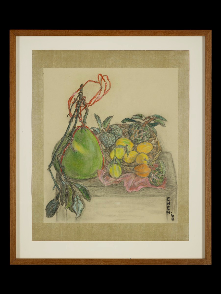 Born in 1923, Lim Tze Peng is largely a self-taught artist. In his oeuvre, ink paintings and calligraphic works feature prominently, although there is a small number of oils, watercolours and drawings. He created a unique style of ink painting using rich brush and tonal details, and this approach is often regarded as a manifestation of the Nanyang Style in the ink medium. Lim, a school principal until his retirement in the early 1980s, was awarded the Cultural Medallion by the Singapore government in 2003.As still life painting allows an artist to hone his observation skills, Lim kept up with the practice throughout his artistic career, producing countless charming depictions of tropical fruit and vegetable arrangements.