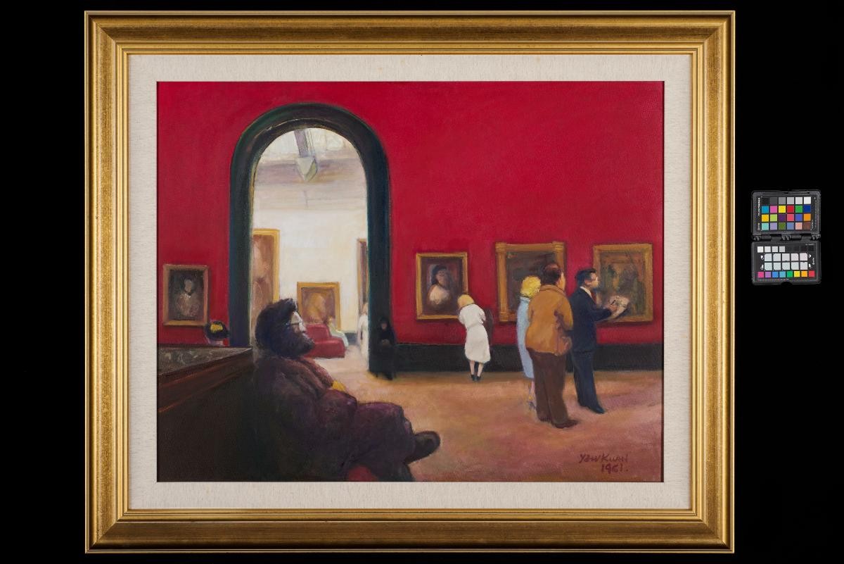 Born in Fujian Province, Liu Kang (1911-2004) received his formal training in Shanghai Academy of Fine Art, where he was exposed to Chinese paintings. In 1928, he went to Paris where he was influenced by art movements such as Fauvism and Post-Impressionism. Not only was he one of Singapore’s pioneer artists, he was also a leading figure in the Society of Chinese Artists and the Singapore Art Society. In 1970, he was awarded the Public Service Star for his contributions in the field of art.Drawing inspiration from a familiar place—an art gallery—Liu chooses to focus on the gallery visitors rather than the art.