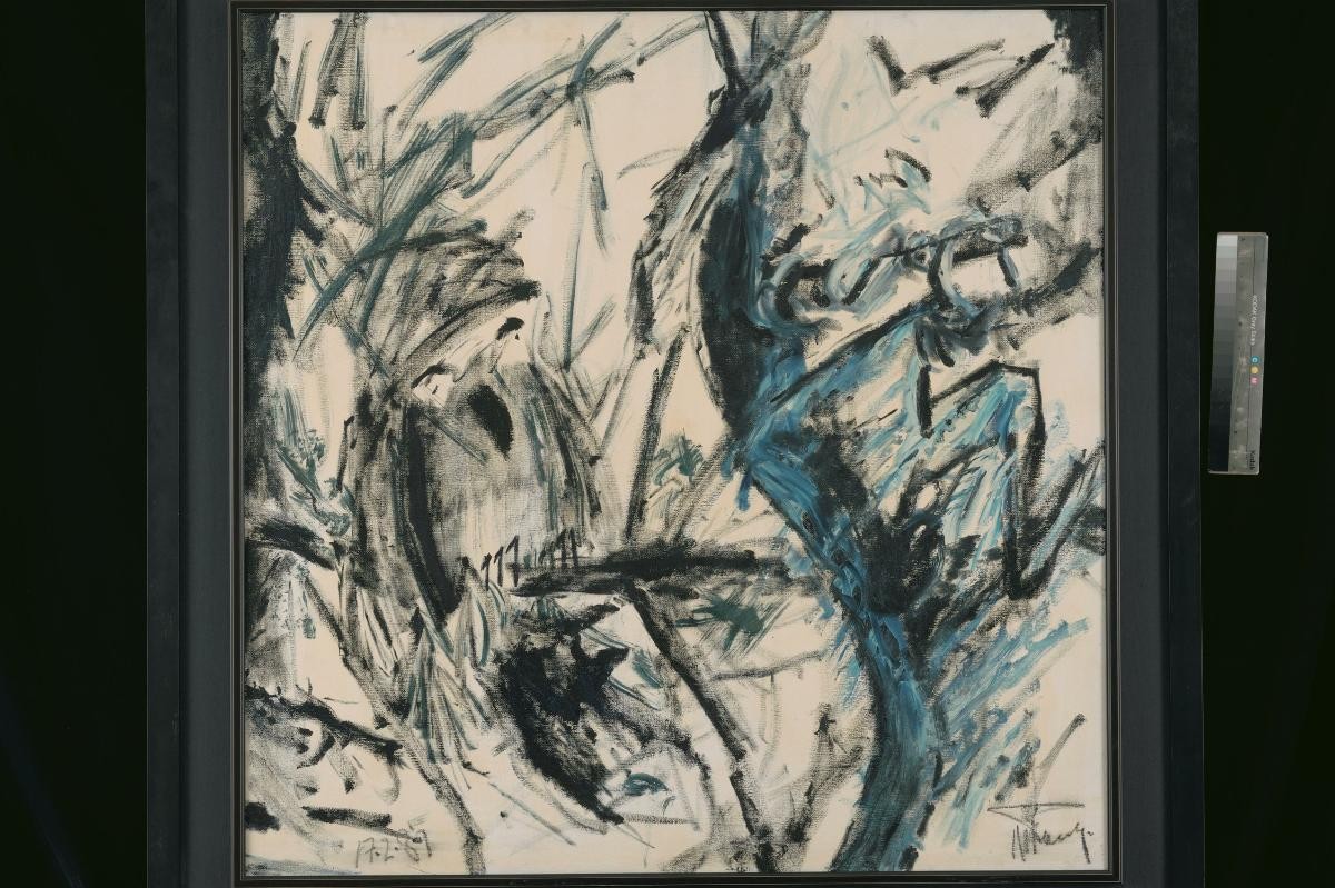Tang Da Wu, born in 1943, is widely regarded as the central figure in the development of ‘alternative’ art in Singapore. A graduate from Goldsmith College, University of London with a Master of Art, he led a group of younger artists to establish The Artists Village in Singapore in 1988, where performance, installation and painting took place. Since the late 1990s, Tang has been working on community projects that deal with memory, history as well as environmental issues. In 1999, Tang was awarded the Arts and Culture Prize at the 10th Fukuoka Asian Culture Prizes and in 2007, he was one of four artists who represented Singapore at the Venice Biennale.‘Wolf in the Basement’ is an enigmatic work in which a man, lying on the ground while his companion sits nearby, peers over an edge to a wolf below. In this monochromatic work, texture and contrast are created by lines and tonal variations.