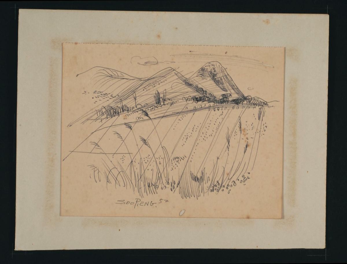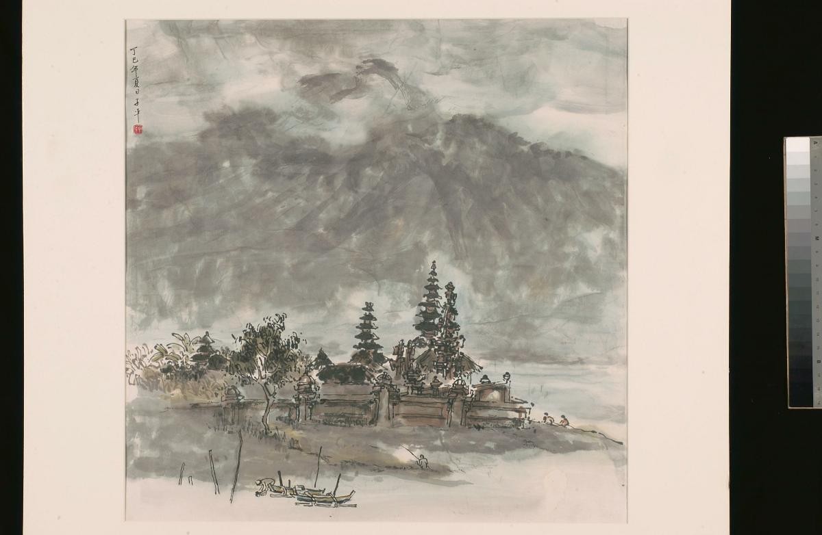 Born in 1923, Lim Tze Peng is mainly a self-taught artist. Ink paintings and calligraphic works are predominantly featured in his work, though there is a small collection of early oils, watercolours and drawings. He created a unique style of ink painting using rich brush and tonal details, and this approach is often regarded as a manifestation of the Nanyang Style in the ink medium. He was awarded the Cultural Medallion in 2003.Bali’s unspoilt lush greenery was a favourite subject for Lim and his travels there resulted in many paintings. With sensitive ink washes, he depicted a tranquil and peaceful side of the island paradise, of towering pagodas set against majestic mountains.