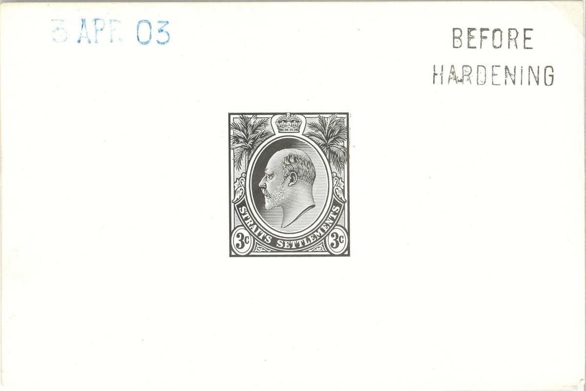 King Edward VII 1-cent, 3-cent and 4-cent imperforated plate proofs affixed with original paper.