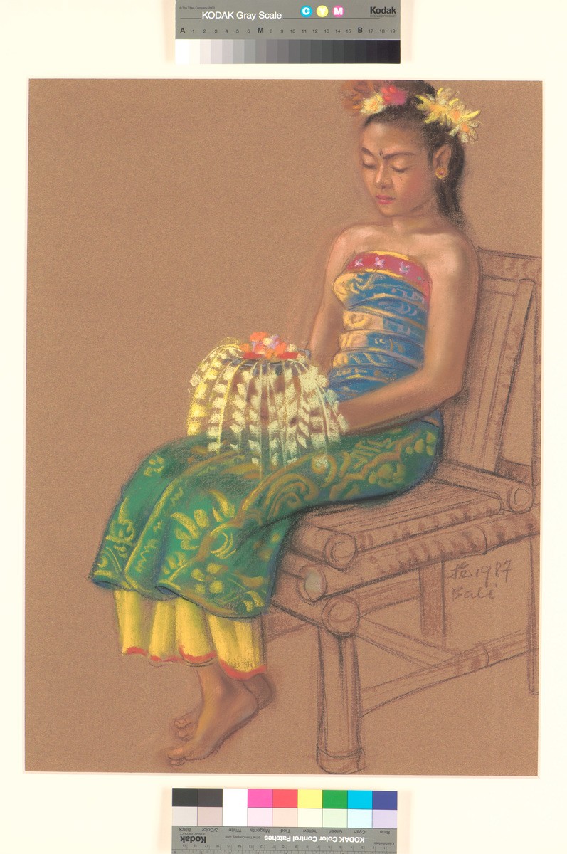 Born in Fujian Province, Liu Kang (1911-2004) received his formal training in Shanghai Academy of Fine Art, where he was exposed to Chinese paintings. In 1928, he went to Paris where he was influenced by art movements such as Fauvism and Post-Impressionism. Not only was he one of Singapore’s pioneer artists, he was also a leading figure in the Society of Chinese Artists and the Singapore Art Society. In 1970, he was awarded the Public Service Star for his contributions in the field of art.The historic Bali trip undertaken by Liu and his fellow artists in 1952 was a significant milestone in the development of the Nanyang style. The life and culture of the islanders inspired Liu and as this portrait of a Balinese girl shows, the island continued to fascinate him even in the late 1980s.