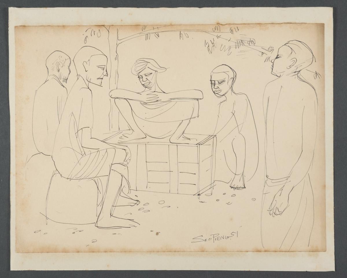 Born to a literati family in Shanghai, China, Huang Yao (1914-1987) received his formative education from his father in classical literati traditions and calligraphy, particularly in the archaic scripts of oracle bone and bronze inscription. In the 1930s, he gained recognition as a talented cartoonist for creating the comic character “Niu Bi Zi” which was widely used as an educational resource in schools. Huang travelled to Southeast Asia after the end of World War II in 1945, and resided in different countries before settling permanently in Malaysia in 1956. He worked primarily as an art educator until his retirement in 1973. A prolific artist, he had held 23 solo and group exhibitions and six retrospective exhibitions.Highly skilled in the technique of Chinese ink and brush painting, Huang depicts the thick foliage with an astounding variety of brushstrokes, including the “Mi dot”, an influence from the famed calligrapher Mi Fu (1051-1107). Contentment is a recurring theme that is seen in many of Huang’s works and here sitting under the magnificent tree is an elderly recluse, meditating in nature.