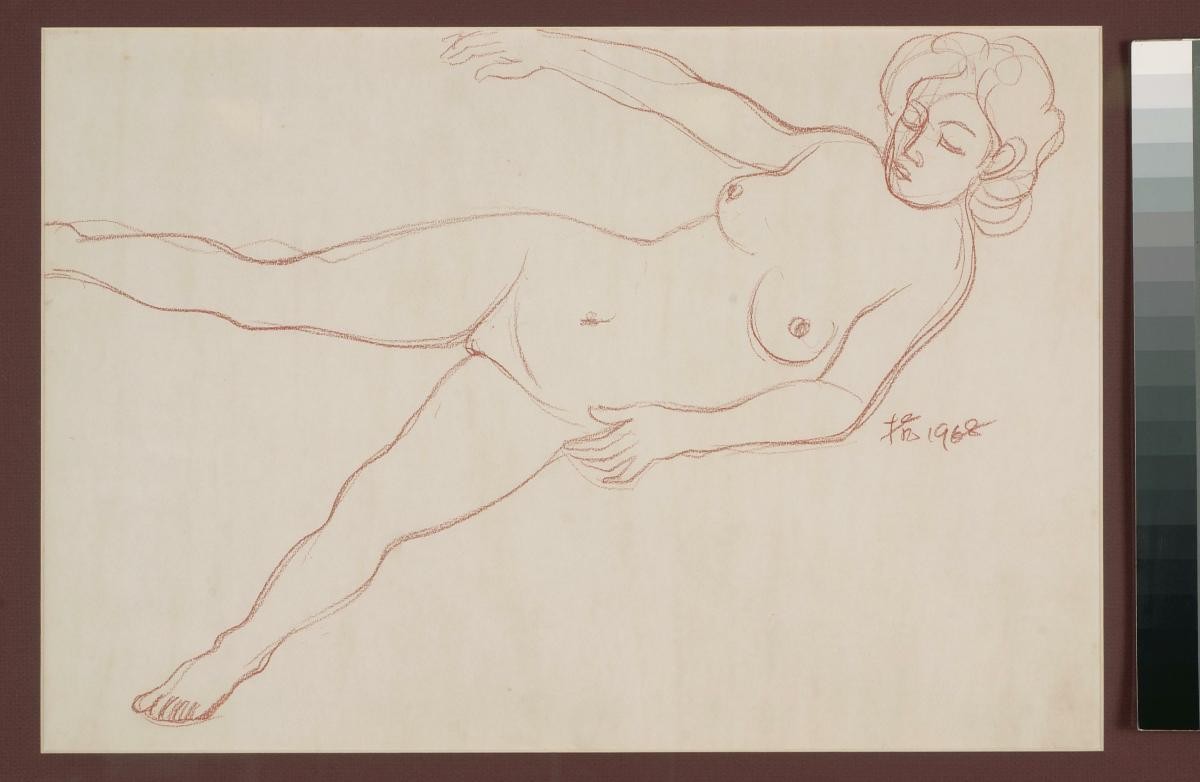 Born in Fujian Province, Liu Kang (1911-2004) received his formal training in Shanghai Academy of Fine Art, where he was exposed to Chinese paintings. In 1928, he went to Paris where he was influenced by art movements such as Fauvism and Post-Impressionism. Not only was he one of Singapore’s pioneer artists, he was also a leading figure in the Society of Chinese Artists and the Singapore Art Society. In 1970, he was awarded the Public Service Star for his contributions in the field of art. To Liu, life drawing is the most challenging art practice as the variables change at every session. However he felt that it helps an artist hone his observation skill, and aids his understanding of linework and composition. This group of sketches is part of the generous donation from the Liu family to the National Heritage Board in 2003.