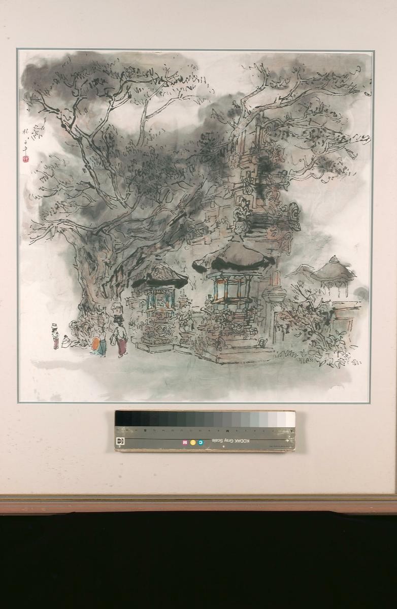 Born in 1923, Lim Tze Peng is largely a self-taught artist. In his oeuvre, ink paintings and calligraphic works feature prominently, although there is a small number of oils, watercolours and drawings. He created a unique style of ink painting using rich brush and tonal details, and this approach is often regarded as a manifestation of the Nanyang Style in the ink medium. Lim, a school principal until his retirement in the early 1980s, was awarded the Cultural Medallion by the Singapore government in 2003.Bali has been a source of inspiration for many artists and Lim too was mesmerized by the tropical island, making multiple visits there. He often returned home with artworks that document the life of the Balinese, their festivals, unique architecture and the lush landscape.