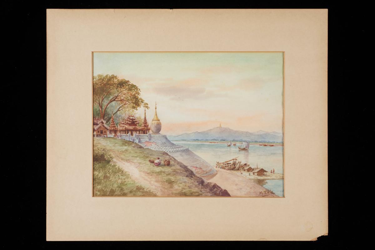 Born in Fujian Province, Liu Kang (1911-2004) received his formal training in Shanghai Academy of Fine Art, where he was exposed to Chinese paintings. In 1928, he went to Paris where he was influenced by art movements such as Fauvism and Post-Impressionism. Not only was he one of Singapore’s pioneer artists, he was also a leading figure in the Society of Chinese Artists and the Singapore Art Society. In 1970, he was awarded the Public Service Star for his contributions in the field of art.Liu travelled around Southeast Asia to paint the people, life and landscape of the region. ‘Yangon, Burma’ depicts a sight seen everyday in the country where Buddhism is the main religion: a group of monks and worshippers on their way to a temple.