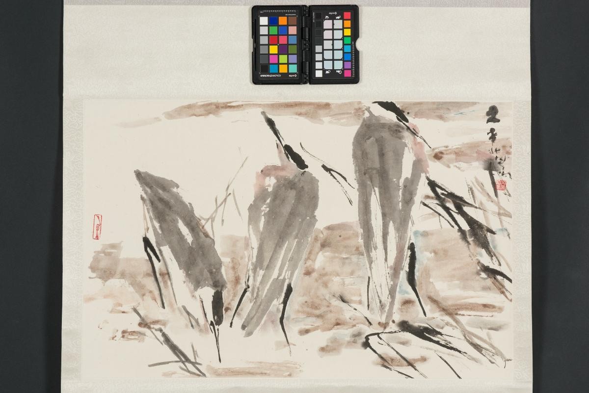 Born in Fujian, China, Shi Xiangtuo (1906-1990) came from an eminent family of seal carvers and calligraphers, Trained by his father, he is best known for his calligraphy and seal work. In addition, Shi was an accomplished ink painter who counted the Shanghai School and, in particular, Wu Changshuo’s paintings as major influences. He emigrated to Singapore in 1938 and contributed immensely in the area of art education: first as a principal at a primary school and later as a lecturer at Nanyang Academy of Fine Arts. In 1979, Shi was awarded the Public Service Star by the Singapore government.Although Shi was trained in the classical literati tradition, he was open to venturing beyond tradition and exploring creative compositions in his work. Here, Shi adopts a non-traditional composition even as he includes traditional Chinese symbols of the lotus and stork. Another departure from tradition is Shi’s use of white: the petals of the lotus are painted where traditionally they would have been left unpainted.