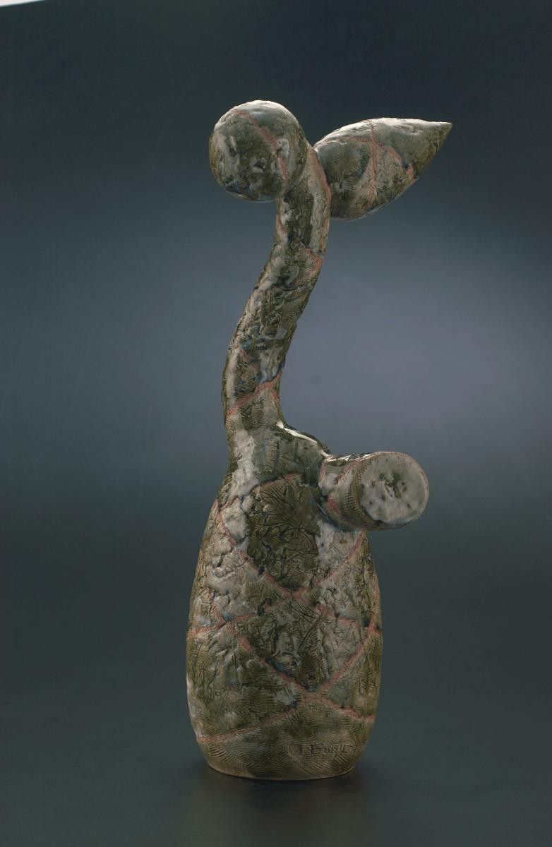 One of the most prolific and talented artists in Singapore, Ng Eng Teng produced more than 300 sculptures over a span of 40 years. These included large-scale public sculptures to life-sized and smaller sculptures. His art education started in Singapore as a painting student at Nanyang Academy of Fine Arts (NAFA), before continuing his studies in industrial pottery in North Staffordshire College of Technology, England. He went on to study studio pottery in Farnham School of Art and subsequently became a designer in a pottery factory in Ireland for a few years. These various stints equipped him with the necessary technical vocabulary to deal with the 3-dimensional form.From the Dancer series which dates back to around 1990, ‘Dancer’ continues Ng’s investigation into re-looking at the human torso. In this series, although the torso has been reduced and simplified, the figure is still the central preoccupation. However beyond examining formal qualities, there is an attempt by Ng to capture the essence of a dancer in motion.