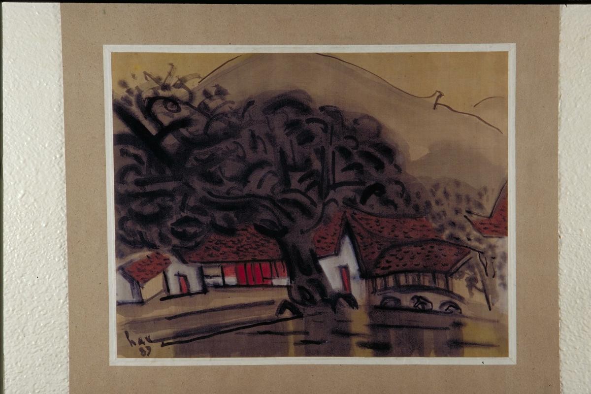 Born in Fujian Province, Liu Kang (1911-2004) received his formal training in Shanghai Academy of Fine Art, where he was exposed to Chinese paintings. In 1928, he went to Paris where he was influenced by art movements such as Fauvism and Post-Impressionism. Not only was he one of Singapore’s pioneer artists, he was also a leading figure in the Society of Chinese Artists and the Singapore Art Society. In 1970, he was awarded the Public Service Star for his contributions in the field of art.For Liu, the first step in the execution of a painting was drawing, as a way to explore possible pictorial composition. This sketch depicts the famous Malaccan landmark, the Christ Church of Malacca, and is possibly a preparatory sketch for ‘Red Building’, an oil painting completed in 1952, which is in the SAM collection.