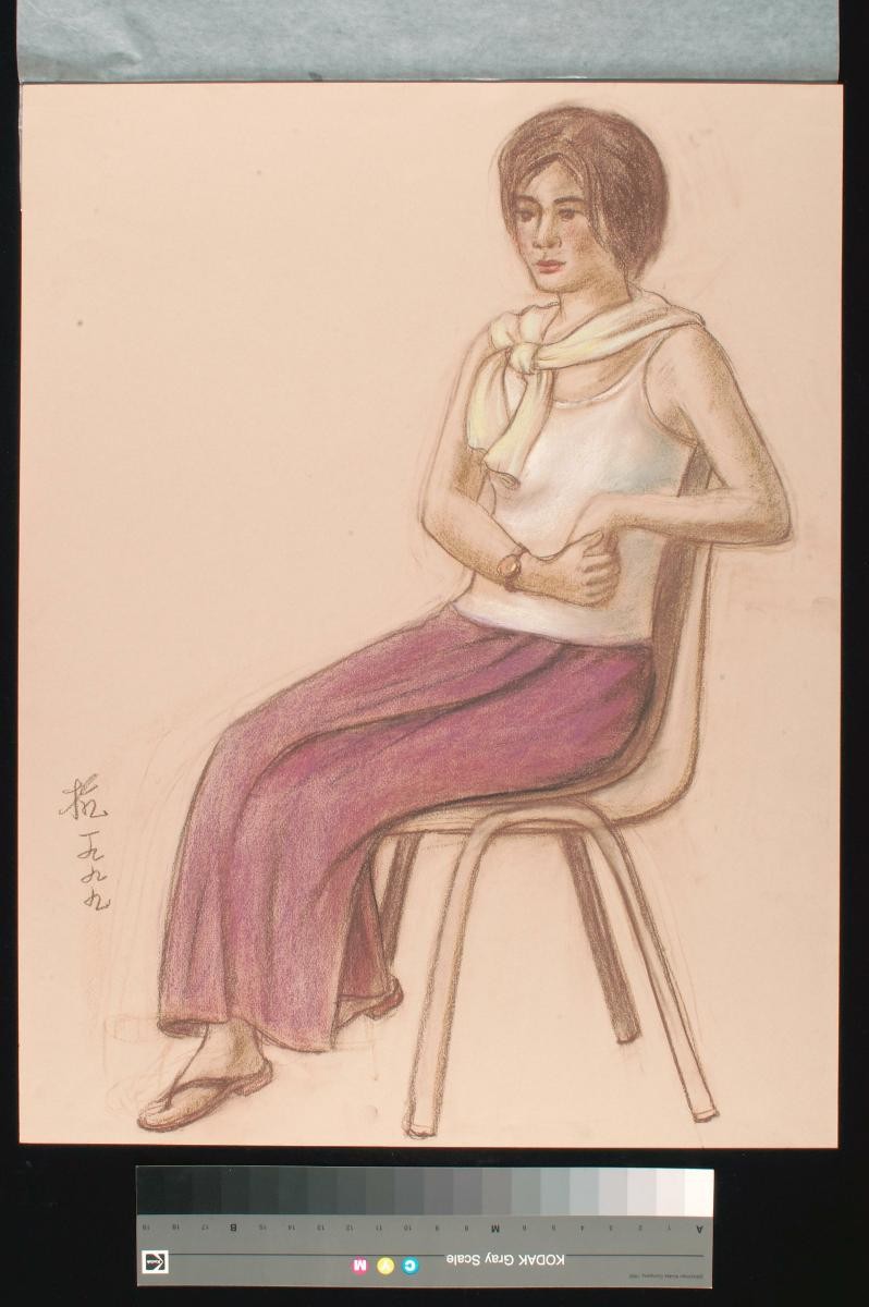 Born in Fujian Province, Liu Kang (1911-2004) received his formal training in Shanghai Academy of Fine Art, where he was exposed to Chinese paintings. In 1928, he went to Paris where he was influenced by art movements such as Fauvism and Post-Impressionism. Not only was he one of Singapore’s pioneer artists, he was also a leading figure in the Society of Chinese Artists and the Singapore Art Society. In 1970, he was awarded the Public Service Star for his contributions in the field of art.Mainly an oil painter, Liu started using pastel during the Japanese Occupation (1942-1945) as oil paints were not available then. He found that the luminous quality of pastel lends itself better to the depiction of human figures and began to use this medium for portraiture earning a reputation as one of the best pastel artists in Southeast Asia. Unlike many of his portraits, this one shows, albeit faint, a background.