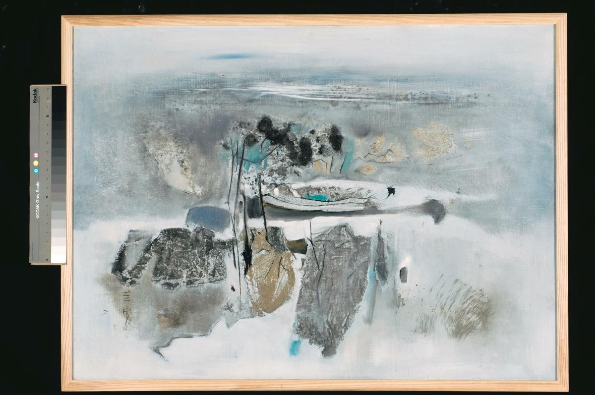 Born to a literati family in Shanghai, China, Huang Yao (1914-1987) received his formative education from his father in classical literati traditions and calligraphy, particularly in the archaic scripts of oracle bone and bronze inscription. In the 1930s, he gained recognition as a talented cartoonist for creating the comic character “Niu Bi Zi” which was widely used as an educational resource in schools. Huang travelled to Southeast Asia after the end of World War II in 1945, and resided in different countries before settling permanently in Malaysia in 1956. He worked primarily as an art educator until his retirement in 1973. A prolific artist, he had held 23 solo and group exhibitions and six retrospective exhibitions.“Wenzi hua” (calligraphic paintings) are Huang’s scholarly contributions to the artistic and literary fields and they display his inventiveness, especially from the 1970s. After careful study Huang would replace characters with images or phonetically similar words. To illustrate “Quietness” (“an jing” in Chinese), the character “an” is represented by a woman under a shelter (in an identical composition with the Chinese character) and “jing” by a well as it has the same phonetic sound.