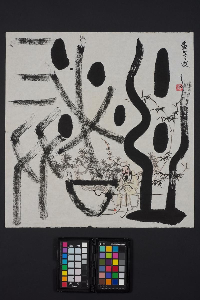 Born to a literati family in Shanghai, China, Huang Yao (1914-1987) received his formative education from his father in classical literati traditions and calligraphy, particularly in the archaic scripts of oracle bone and bronze inscription. In the 1930s, he gained recognition as a talented cartoonist for creating the comic character “Niu Bi Zi” which was widely used as an educational resource in schools. Huang travelled to Southeast Asia after the end of World War II in 1945, and resided in different countries before settling permanently in Malaysia in 1956. He worked primarily as an art educator until his retirement in 1973. A prolific artist, he had held 23 solo and group exhibitions and six retrospective exhibitions.Huang’s “wenzi hua” (calligraphic paintings) are the result of a decade of research. They display his inventiveness, especially from the 1970s, as one of its characteristics is the reversal of roles of characters and images: the former dominates while the latter tends to be small, faint or remain in the background.