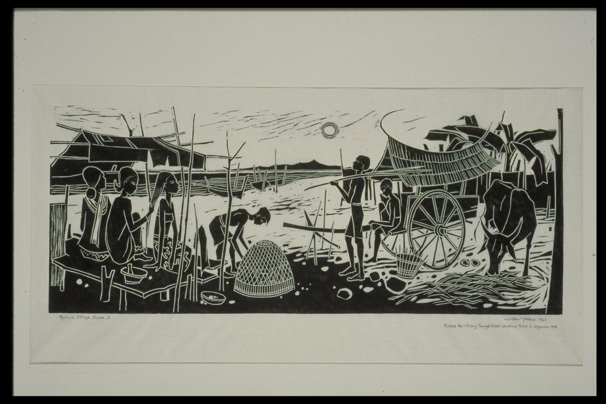 Born in Fujian Province, Liu Kang (1911-2004) received his formal training in Shanghai Academy of Fine Art, where he was exposed to Chinese paintings. In 1928, he went to Paris where he was influenced by art movements such as Fauvism and Post-Impressionism. Not only was he one of Singapore’s pioneer artists, he was also a leading figure in the Society of Chinese Artists and the Singapore Art Society. In 1970, he was awarded the Public Service Star for his contributions in the field of art.Liu travelled frequently around Southeast Asia, documenting the people and landscape of the region. Depicted here are two iconic landmarks of Malacca: the Stadhuys, the Municipal Hall until 1979, and the Victoria Fountain on the front lawn.