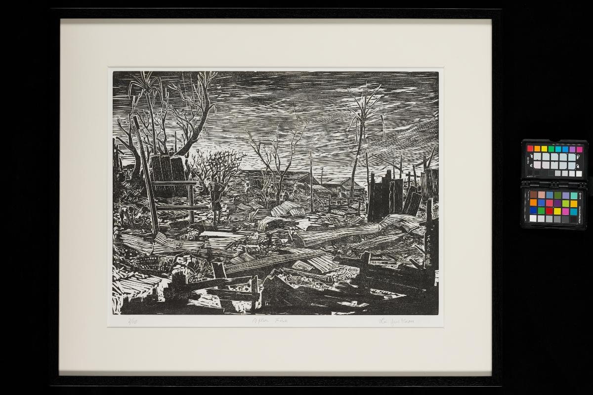 Born in Fujian Province, Liu Kang (1911-2004) received his formal training in Shanghai Academy of Fine Art, where he was exposed to Chinese paintings. In 1928, he went to Paris where he was influenced by art movements such as Fauvism and Post-Impressionism. Not only was he one of Singapore’s pioneer artists, he was also a leading figure in the Society of Chinese Artists and the Singapore Art Society. In 1970, he was awarded the Public Service Star for his contributions in the field of art.Liu’s landscape paintings are not only depictions of idyllic scenes but also of the harsh realities of life. In the past, fires were common occurrences, and here Liu depicts a family sitting helpless in the aftermath of a devastating fire. In the SAM collection is another painting entitled ‘After the Fire I’, completed a year earlier.