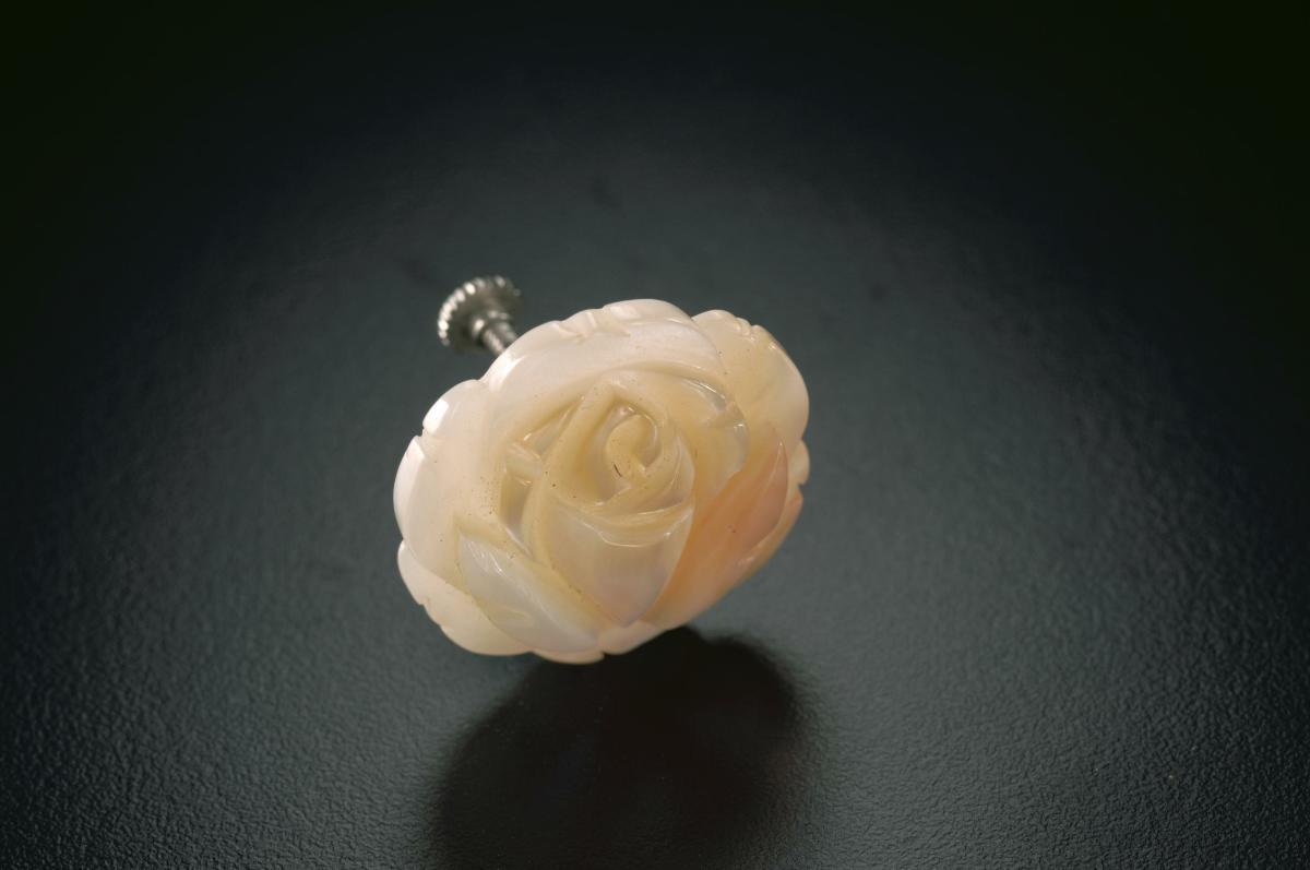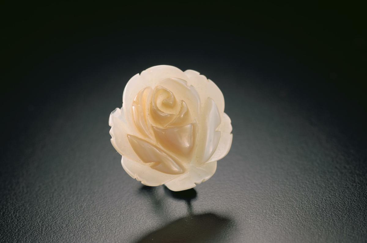 This pair of gold floral studs decorated with repoussé, granulation with ruby inlay belongs to a group of architecturally designed jewellery from South India. This type of earrings not only bear caste identity, they also suggest the religion of the wearer. These are worn by Hindu women.