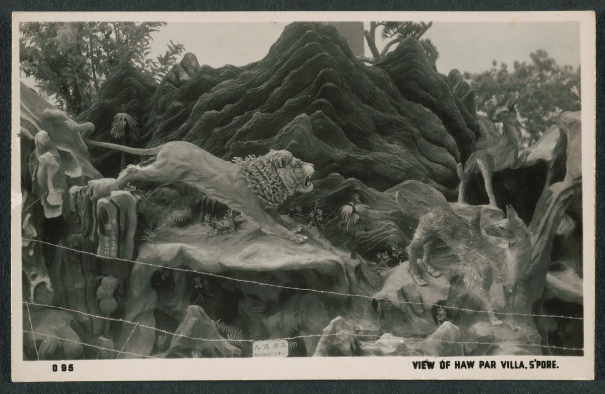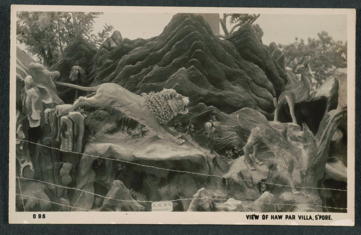 Originally called Tiger Balm Gardens, Haw Par Villa was built on Pasir Panjang Road in 1937 by Aw Boon Haw, who set up an entertainment and educational park on the site, erecting statues and tableaux portraying anecdotes from Chinese legends and folklore. This exhibit, depicting a lion dance, is a typical example. Traditionally, lion dances are welcomed by the Chinese community in Singapore as they are associated with joyous festivities and good fortune. They are a common sight during auspicious occasions such as Chinese New Year as well as at the inauguration of new business premises.