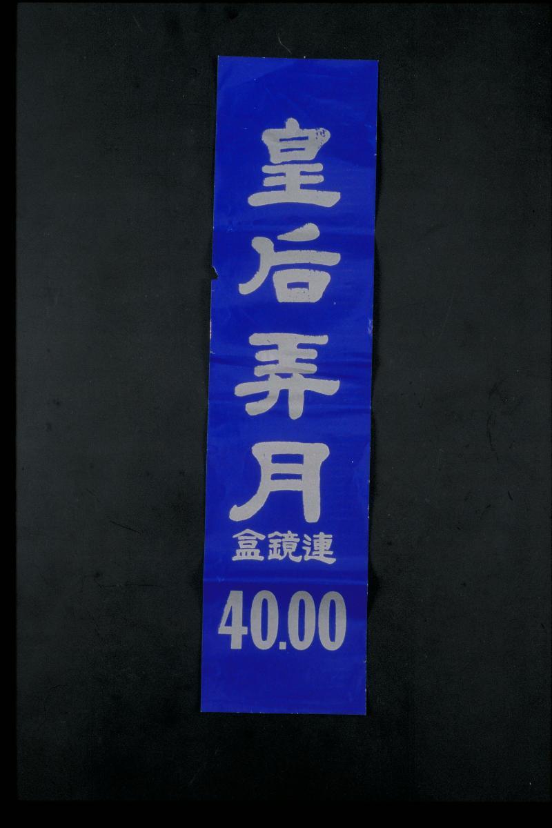 This is an advertisement for皇后月饼 (Empress mooncake). It was located at密驼街(Middle Road). Mooncakes are Chinese pastries traditionally eaten in small wedges accompanied by Chinese tea during the Mid-Autumn Festival.