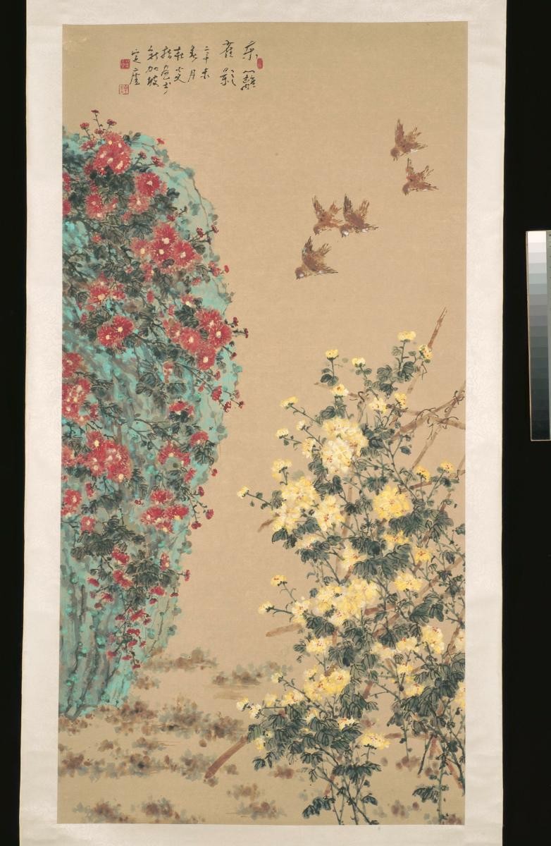 The spirit of the Lingnan School spread beyond China and lived well into the post-war period as a result of Zhao Shao’ang’s efforts. Zhao showed great virtuosity in this bold composition. The gnarled surface of the pine tree is effectively conveyed through the variation of ink and strokes. His concern was to capture the play of light on the colours of the painted subject. White was rarely used in traditional Chinese paintings. Here, it was used to enhance the realistic effect to create varying tones and shades.