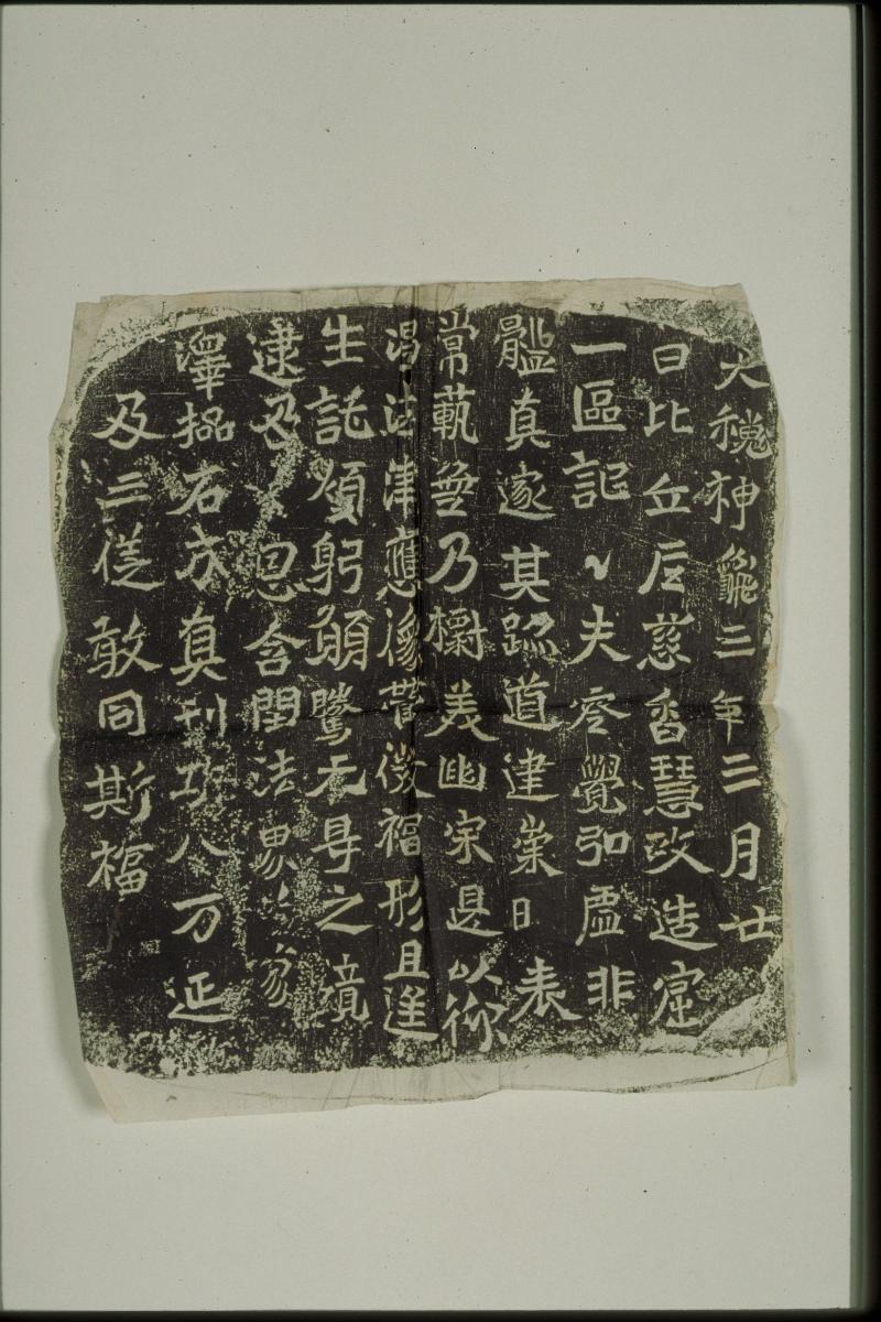 A stone statue of standing Buddha in northern Qi Shandong style - the body is subtly suggested, after the Indian Gupta style, by the drapery of the monastic robe. Buddha's face is serene with a faint smile, the nose aquiline, the hair in snail-curls, his ear-lobes in exaggerated extension. The right arm is missing, but the left arm is intact except for the lower part.Buddhism was gaining great momentum in China and by this time, much of the elite in China were fervent Buddhists. The grottoes were inspired by the Indian models and commissioning the making of Buddhist images was a way to accumulate merit. The Buddhist images in Shandong tend to be confined to depiction of Buddha, but a few centuries later, the cult of bodhisattva would become more important than Buddha.