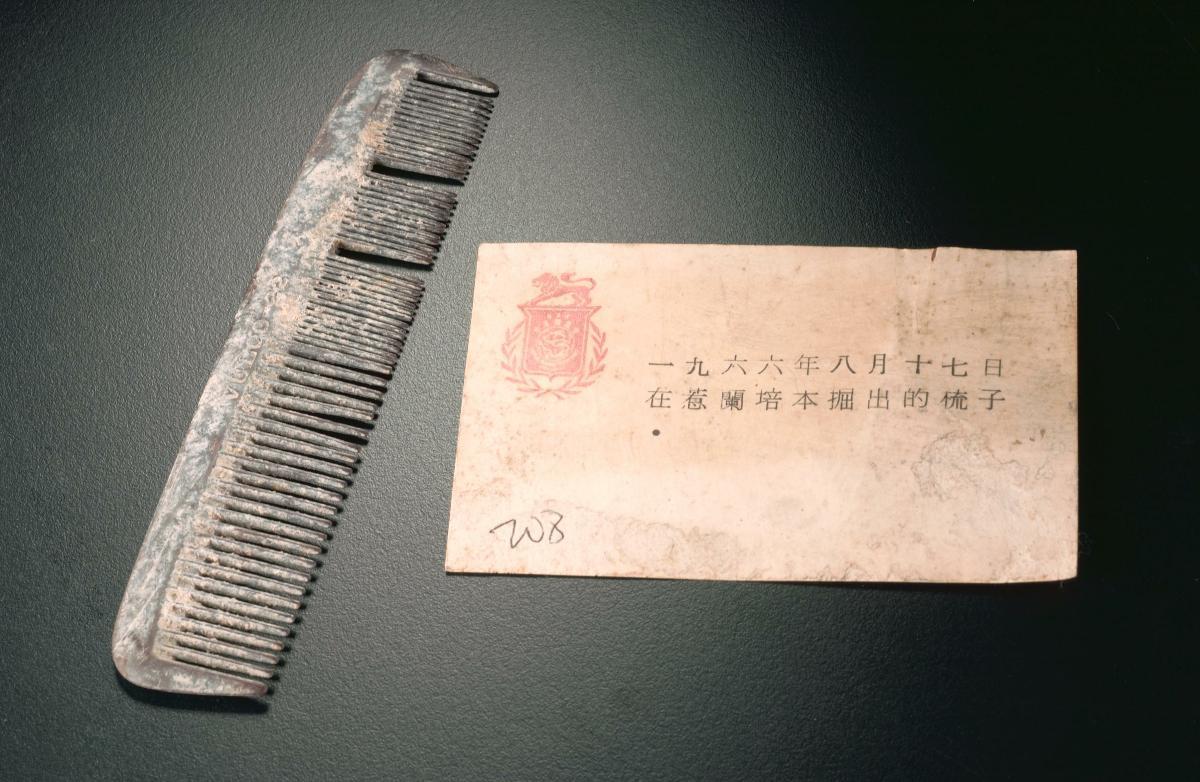 This is a Chinese-style metal comb in the shape of a semicircle. It is studded with diamonds and decorated by engravings of flowers and leaves, which symbolise fertility and vitality. It was worn on the hair for decorative purposes and this was probably designed to be worn by women of fine birth or women from an elite community. The design used points at the presence of Chinese influence on island Southeast Asian jewellery and accessories.