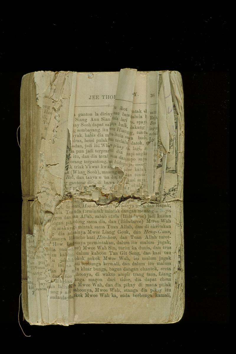 Publications such as this ‘Chrita Dulu-kala’, loosely translated as ‘stories from ancient times’, were written for popular reading at the turn of the 20th century right upto the 1950s. Written in serialised format, Chrita Dulu-kala featured famous Chinese folklore, legends and historical epics such as ‘Romance of the Three Kingdoms’, ‘Water Margin and ‘Journey to the West’ written in Baba Malay - a unique Malay creole with substantial Hokkien (Chinese dialect) influence. These books are not published any more. The author-translator of this publication was Chan Kim Boon, who was one of the more prolific and well-known authors of Chrita Dulu-kala. Chan was an example of a Baba who, although educated in an English-medium school, was well-versed in Chinese literary traditions through Chinese lessons held at home.While the general readership of Chrita Dulu-kala was generally thought to be male and educated, it is possible its contents reached a wider audience. Some older Peranakans today recall being told stories from these books by their elders.