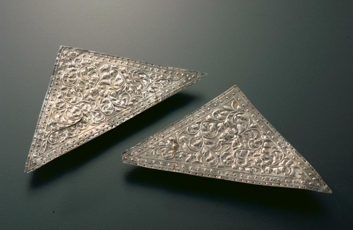 This set of bedcover and pillow ends were used to decorate the wedding bed, which is one of the largest pieces of furniture in a wealthy Peranakan home. They are decorated with a pair of phoenixes, symbol of the empress and benevolence, and fertility symbols such as butterflies and flowers in full bloom. The pillow ends were made with beadwork, a technique also used by Peranakan women to sew purses, cigarette cases and slipper covers.