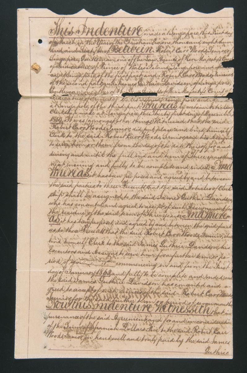 This is an indenture of lease made on 7 December 1839 concerning James Stephen. It is part of a collection of legal documents from the 19th and early 20th centuries which provides a glimpse into the work of the notable personalities who left their mark on Singapore’s legal history, and the economic and other transactions undertaken by ordinary immigrants in 19th century Singapore that tell stories of misfortune and indebtedness which would otherwise have disappeared from history.