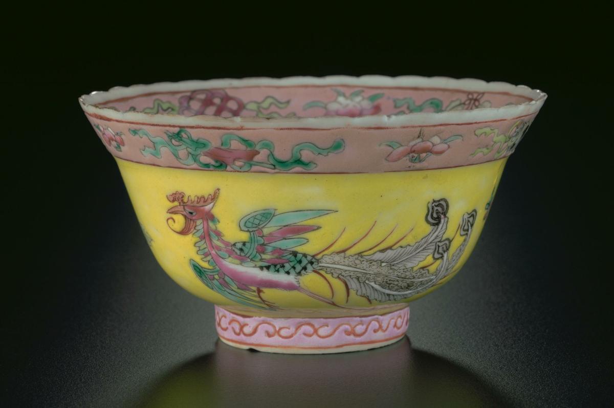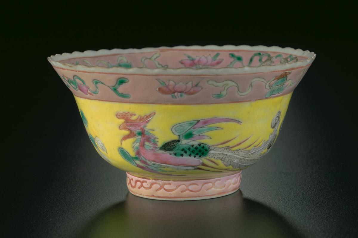 This blue and white bowl with a flared mouth was part of a group of ceramics salvaged from the Tek Sing shipwreck that sank in 1822. The rim of this bowl is decorated with geometric patterns in underglaze blue, with a small rabbit motif in the well of the bowl. This bowl was from the Dehua kilns in Fujian province, which produced large quantities of blue and white porcelain although it is more famous in the West for its pristine ‘blanc-de-chine’ porcelain. A total of 350,000 pieces were retrieved from the ship, the largest haul of Chinese porcelain to date. This large haul indicates that the Southeast Asian demand for such products was high at that time. The bulk of the cargo was aimed at the wealthy Chinese community in Java and the middle and upper-class Javanese who were fond of collecting Chinese porcelain.