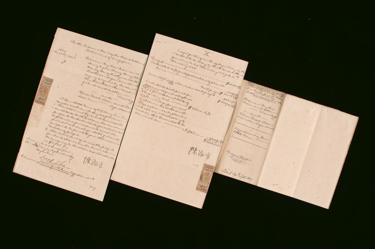This is a consent paper issued by Tay Kip on 17 February 1883, who was the husband of Lim Tean Neo of Malacca, one of the petitioners for probate of the estate of the deceased Kow Im Seng. He consented to the letters of administration for the estate of the deceased Kow to be granted to his wife and Bellmeaner Clarke. This document is part of a collection of legal documents from the 19th and early 20th centuries which provides a glimpse into the work of the notable personalities who left their mark on Singapore’s legal history, and the economic and other transactions undertaken by ordinary immigrants in 19th century Singapore that tell stories of misfortune and indebtedness which would otherwise have disappeared from history.