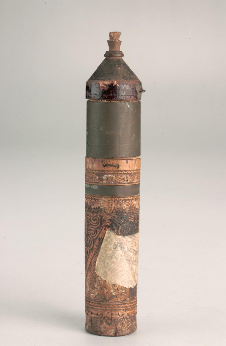 This sireh container belonged to a ‘tempat sireh’ (‘sireh set’) which is the Baba Malay term for a box with a set of containers used to store the various ingredients used in betel-chewing, a practice common among the Peranakan Chinese. This open gold container with floral and leaf designs engraved on it, would hold the ‘pinang’ (areca nut shavings). Tempat sireh is traditionally very important in Peranakan culture, with special significance for the Nonyas. Other than accompanying the day-to-day pleasure of chewing sireh, tempat sireh also played an important ceremonial role in many important rites such as those in a traditional wedding.