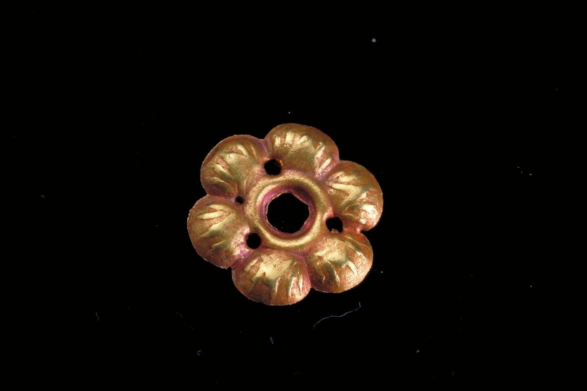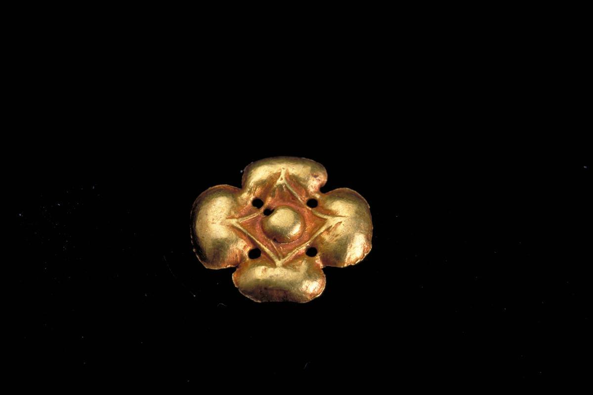 This bridal collar, also known as pedepan, would have been worn by the Peranakan Chinese bride on the first and third day of the wedding ceremony. Made of silk or velvet, it was sewn with filigree ornaments along the edges. Different accessories and outfits were required for the twelve-day traditional Peranakan wedding ceremony, during which symbolic rites were performed by the bride and groom.