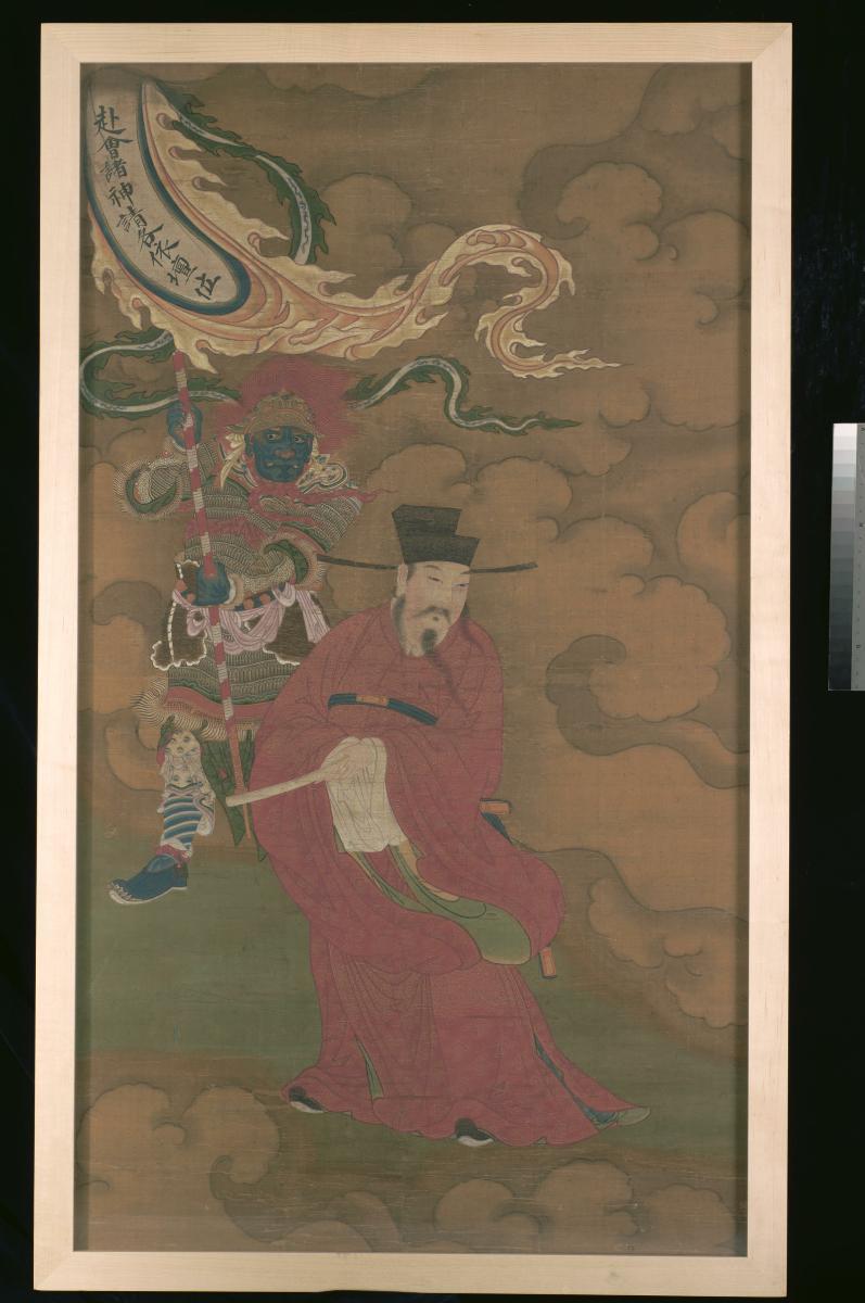 Literally the Lord of the Wall and Moat, the City God is responsible for the peace and prosperity of his territory, like a county magistrate, with whom he cooperates to perform common duties. His area of jurisdiction is not confined to this world but also that of the underworld. In the latter, he functions as a judge, meting out justice to sinners and banishing evil with the assistance of his guardian generals, the Black and White Faces of Impermanence (Heibai Wuchang 黑白无长).