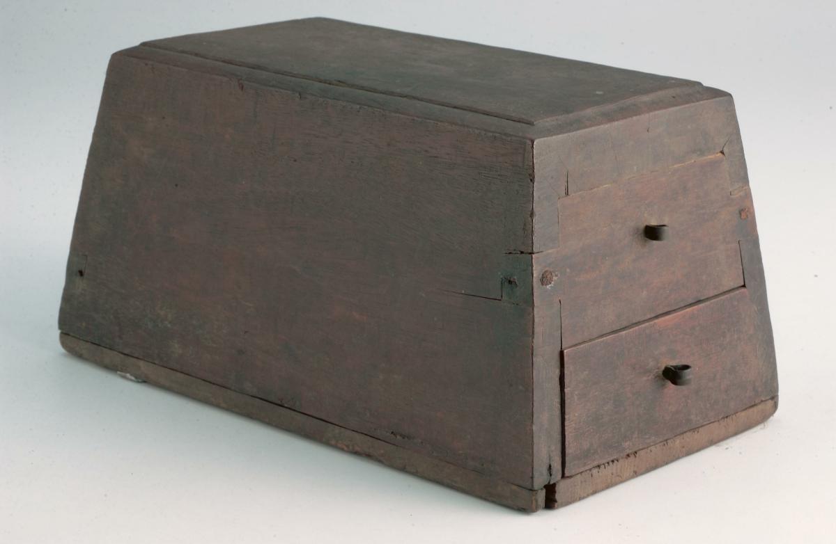 Fisherman's boxes such as these were known as ‘kotak ke laut’ and were commonly used by fishermen to store small items such as fishing tackle. The design of the drawers meant that they could be closed extremely tight so that other items such as tobacco and matches remain dry. The body of most were carved from a single block of wood so that they would not come apart at the seams over time.