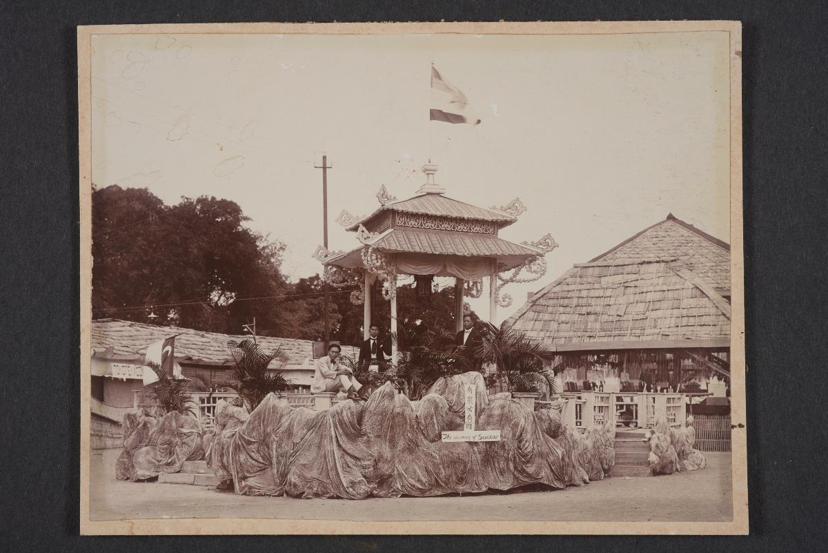 A group of men posing at a pavilion in the Botanic Gardens