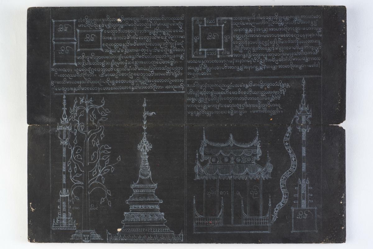 This rare early Malay manuscript is from Pattani, an old Malay Sultanate that is now a part of Thailand. The first text in this handwritten copy includes the Nyanyi Siti Fatimah or Song of Siti Fatimah. These were poems written in praise of Prophet Muhammad’s daughter Fatimah, her husband Ali and their sons Hasan and Husain. A line in the text notes that the manuscript was completed on the 15th day of Ramadhan in 1250 of the Islamic Hijrah calendar. This date corresponds to the 15th January 1835. Interestingly, while the text clearly states that it was written in Pattani, it also notes that it was copied by Bayu bin Daman Syah and was the property of Fakir Ramli of Burma. This link to Burma is significant because the manuscript is handwritten using white ink on black gatefold paper. This type of text was common to Burma and Thailand but is rare in the Malay world.