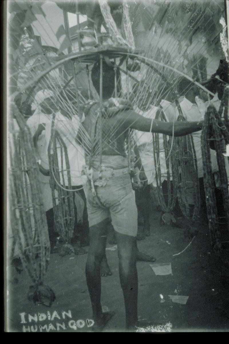 Thaipusam is a Hindu festival celebrated in the Tamil month of Thai – which means ‘tenth’ – when the moon is full. Dedicated to Lord Subramaniam, also known as Lord Murugan, the deity of youth, power and virtue, this festival is a time for repentance for devotees as celebrations are carried out mainly at the temple. The photo of the Hindu devotee is incorrectly labelled a “Indian human god”. Devotees prepare themselves spiritually with extensive prayers and fasting before performing acts of penance or thanksgiving, such as carrying a kavadi (an object symbolising sacrifice) from one temple to another, where devotees pierce their tongues, cheeks and bodies with sharp skewers as a practice of self-mortification.