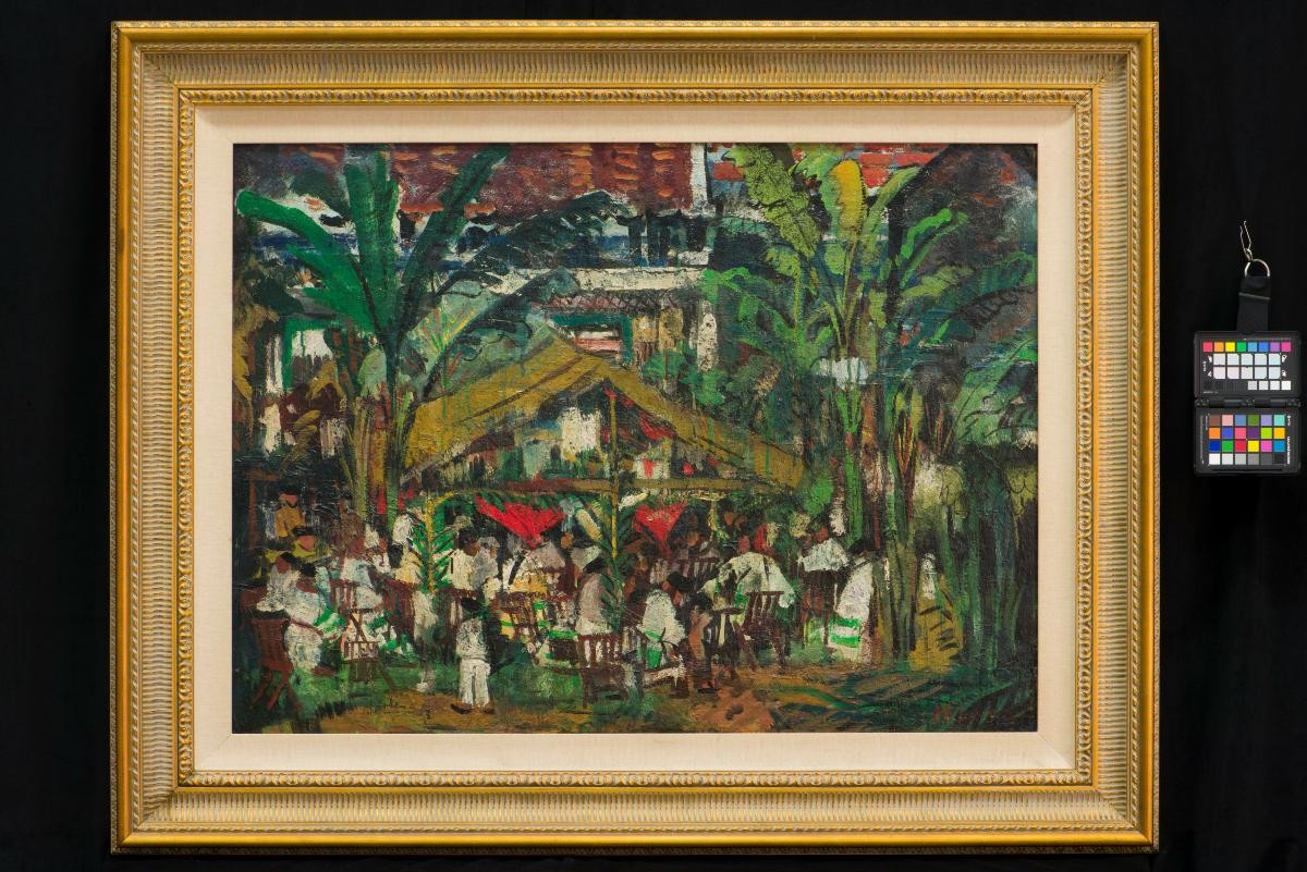 The Nanyang style is a blending of multiple stylistic elements from Chinese pictorial traditions and the School of Paris, practised by a group of artists active in the local art scene after the end of World War II. The vibrant colours chosen by Chen are characteristic of the art as well as the light conditions of a tropical climate.