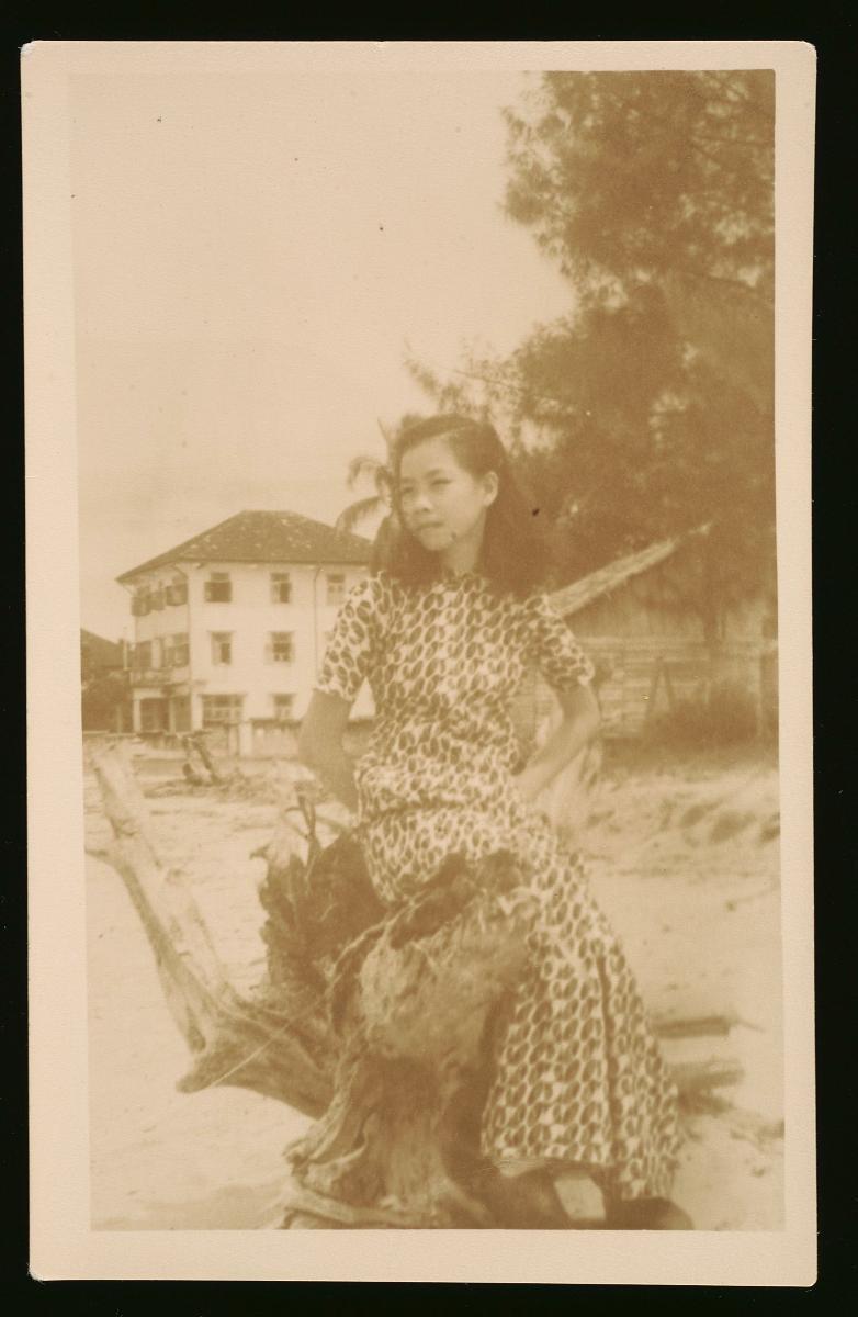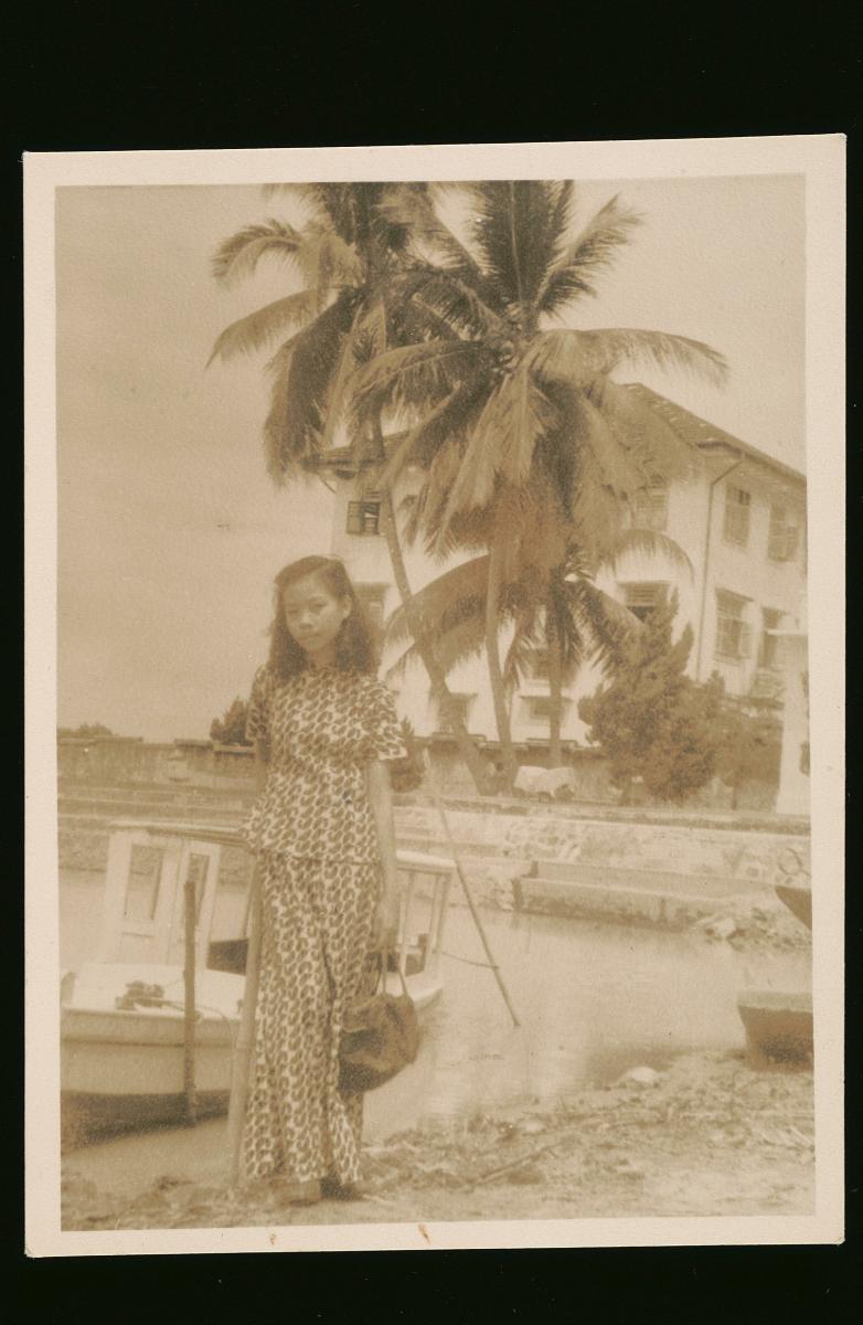 Si Jing (the pen name of Ng Soo Lui) was a prolific female writer in the Chinese community. Born in Singapore in 1934, she has written extensively on her childhood and life in Chinatown. Her husband, Huang Da Li, was an amateur photographer and Si Jing often became the subject of his photographs. In the photograph, Si Jing is wearing a floral Western frock, a common sight in Singapore from the 1950s onwards. As Singapore women became more cosmopolitan and were exposed to Western ideas, they started to look to the West and other parts of Asia (Hong Kong, Shanghai and Tokyo) for fashion inspiration. This eventually resulted in the adoption of such Western-style dresses. This photograph is part of the donor’s personal photograph collection.