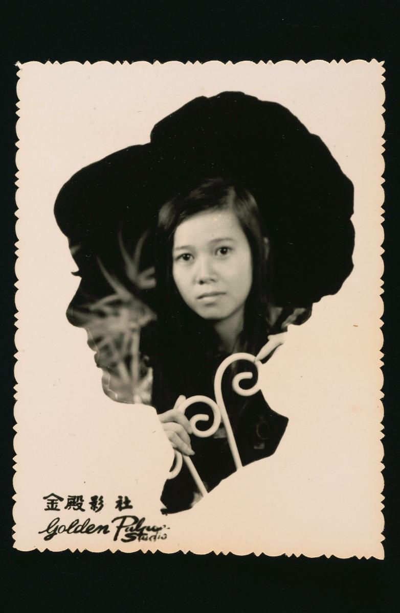 Post-WWII photographic studios in Singapore produced greeting cards like the one seen here—the sender’s photograph is printed with illustrations and greetings, a style reminiscent of the photographic ‘cartes-de-visite’, which were immensely popular during the late 19th century. Often, the choice of the accompanying design reflected the personality of the sender, who penned personal greetings to a friend or relative on the back of the card.