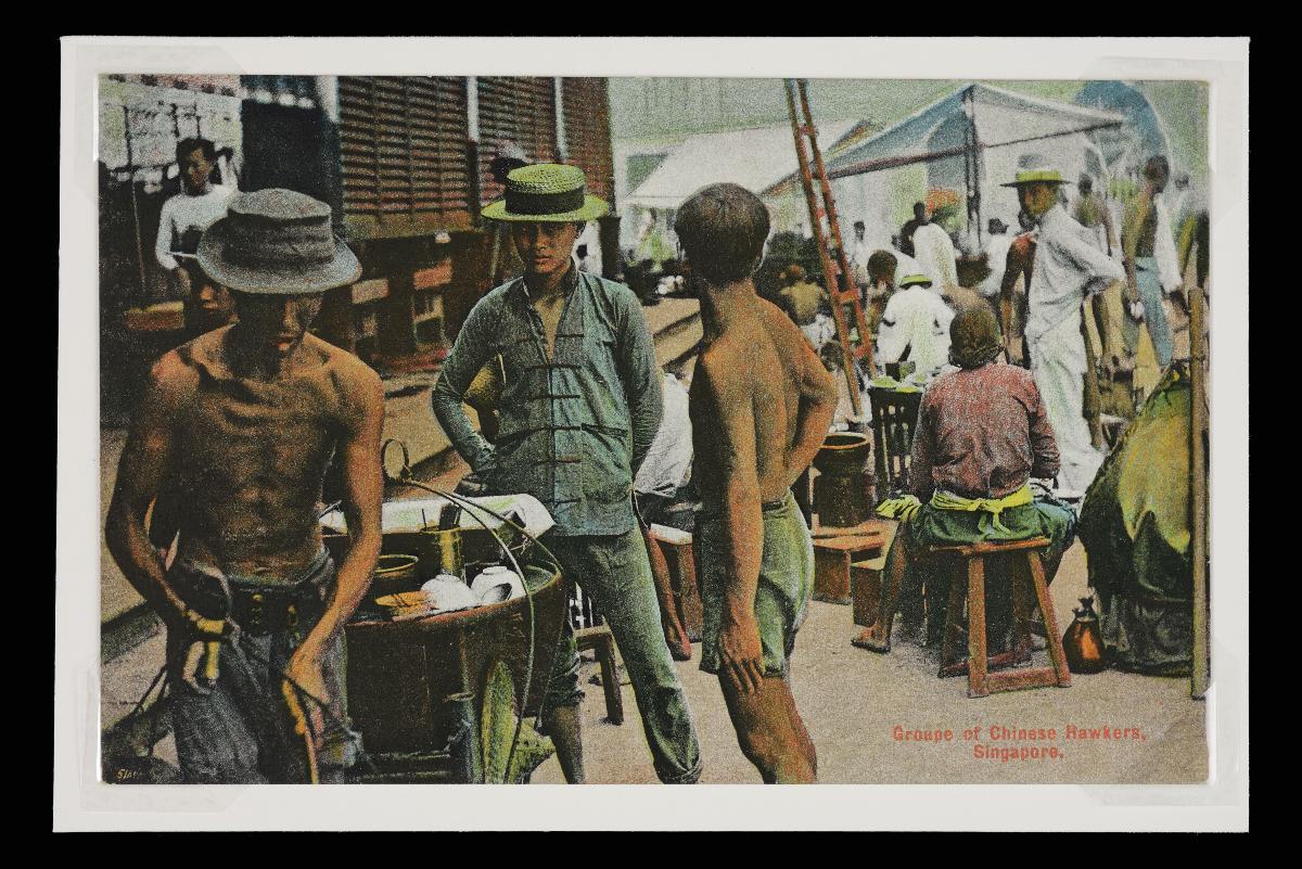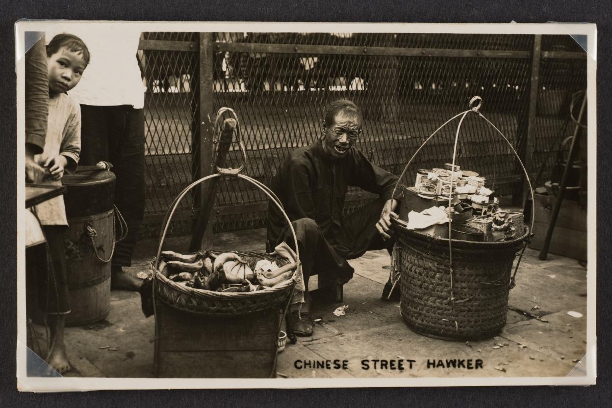 Colored postcard showing a food vendor