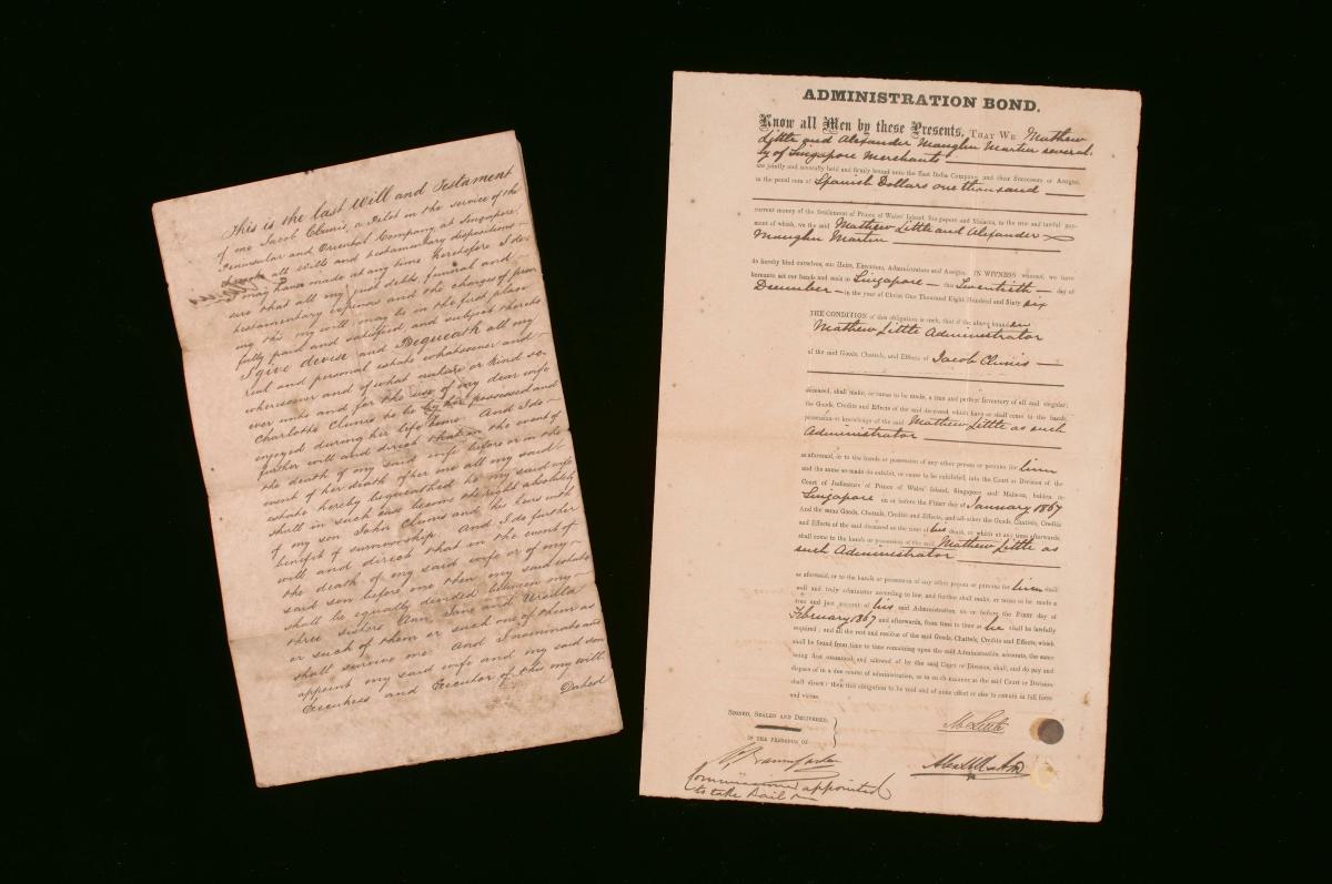 This is a set of documents concerning the administration of the estate of Lutchmee. It is part of a collection of legal documents from the 19th and early 20th centuries which provides a glimpse into the work of the notable personalities who left their mark on Singapore’s legal history, and the economic and other transactions undertaken by ordinary immigrants in 19th century Singapore that tell stories of misfortune and indebtedness which would otherwise have disappeared from history.