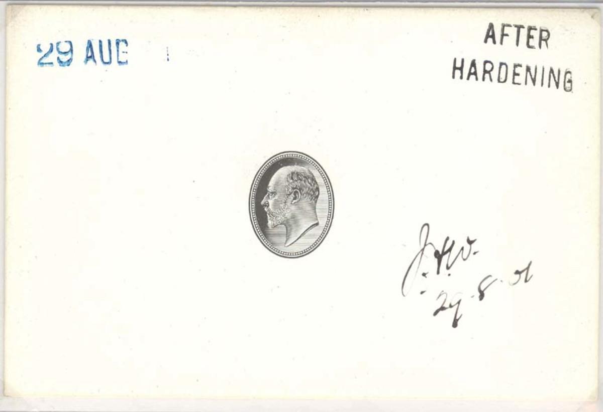 Colonial die proof of the Head of King Edward VII for the small Nyasaland stamp issues of Straits Settlements, dated "14 JUN 07".