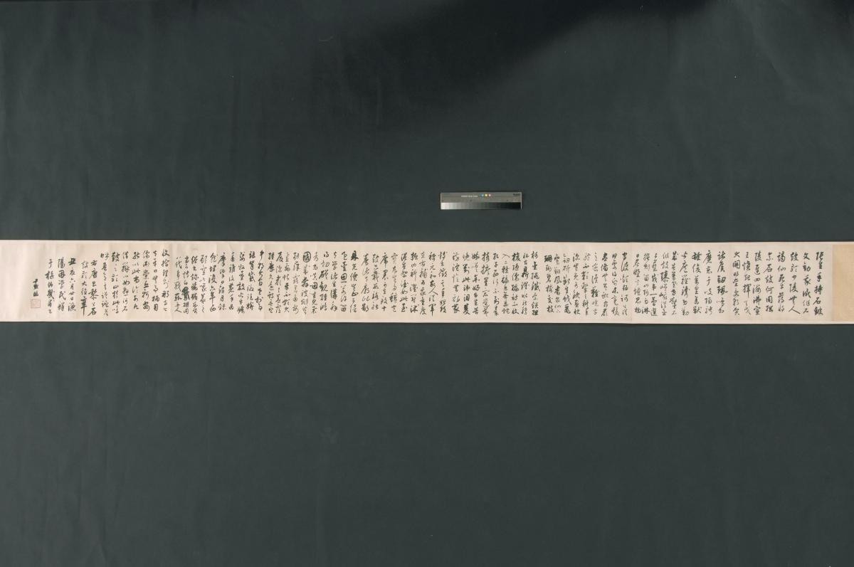 This calligraphy has very powerful but unassuming lishu executed with an execptionally good ink quality. The characters are very even - a very important quality in writing lishu calligraphy. This style of calligraphy was the strength of Di Wenquan (Yunshen), Qing dynasty calligrapher, whose main interest was in ancient scriptures and collecting antiques.Lishu, in Chinese calligraphy, is a style that may have originated in the brush writing of the later Zhou and Qin dynasties (c. 300–200 bc);