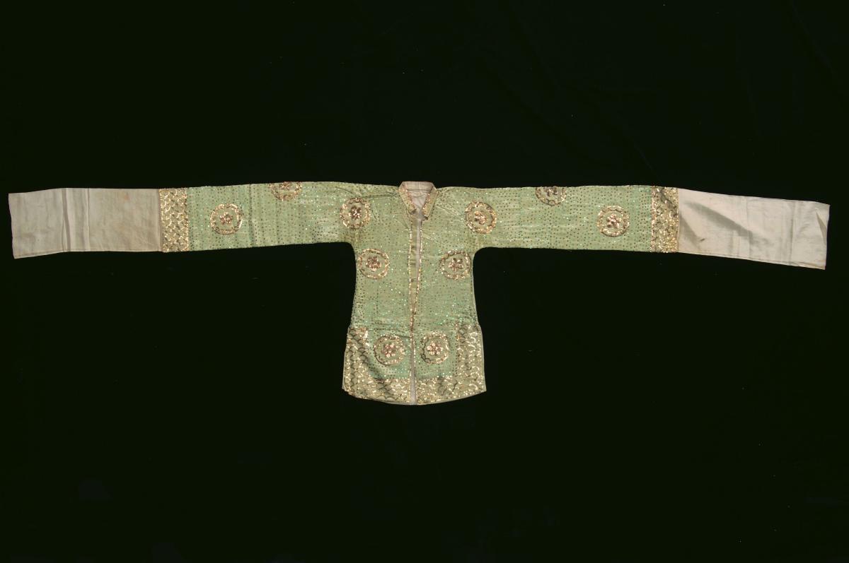 This is a top worn by a ‘qing yi’ in a Chinese opera. A ‘qing yi’ is the role of a virtuous young lady and she is often a tragic heroine. Chinese opera has its origins in Shang dynasty rituals and shamanistic worship but has evolved over time to become an established, stylized dramatic art form. Chinese opera was brought to Singapore by the Chinese immigrants and was referred to locally as Chinese ‘wayang’, the latter being a Malay term that denotes a theatrical or dramatic performance. It was especially popular from the 1880s to the 1930s, as it was an affordable source of entertainment for the masses. Wealthy Chinese families were also known to be patrons of opera troupes, engaging them for private performances in their residences. Typically, Chinese operas were performed on makeshift stages near temples or in temple compounds as they served as a form of entertainment to the gods and were thus essential to the religious festivities. Performances were also staged in opera theatres. They were constructed as early as the 1880s and largely clustered in the Chinatown district. The popularity of Chinese operas waned drastically from the 1950s with the advent of film and television. Nevertheless, they remain an integral part of Singapore’s cultural landscape today.