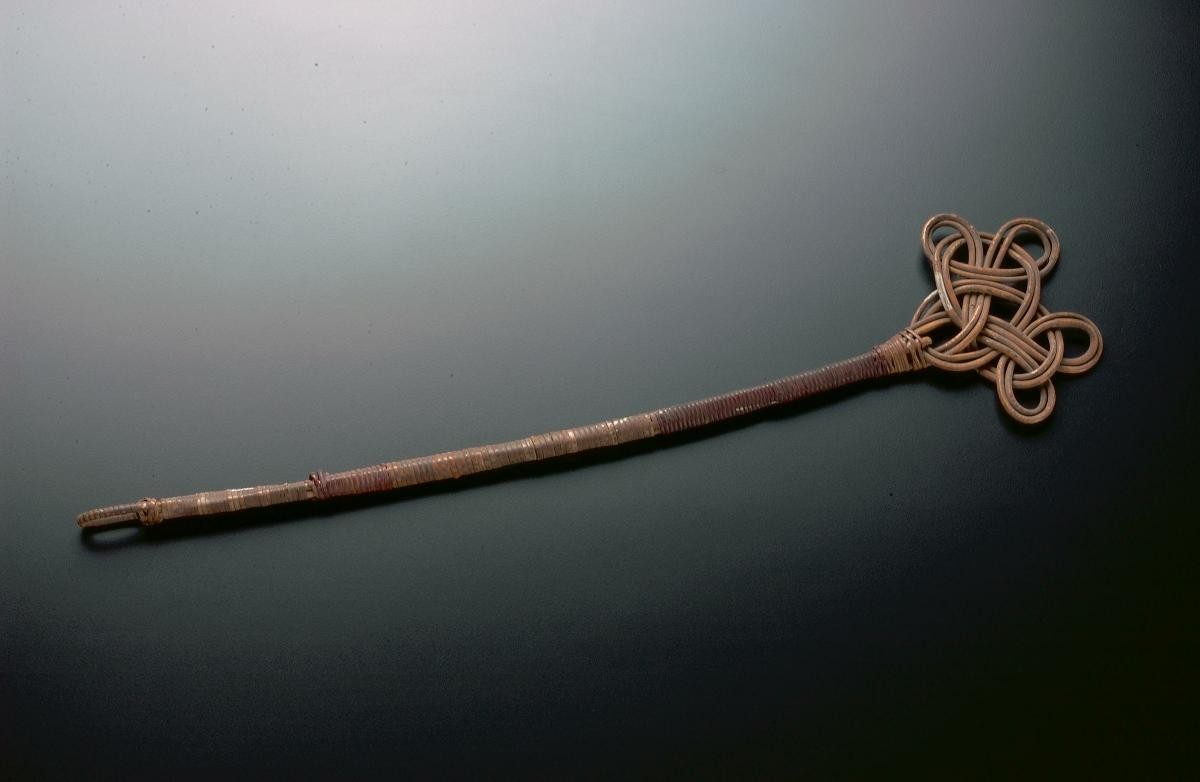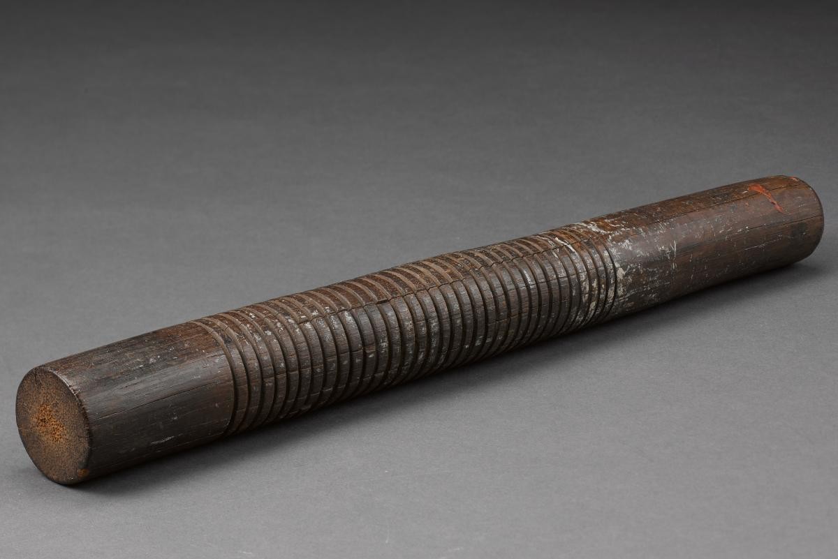 This beautifully shaped beater, made of solid wood, is used for beating back the weft threads on a tablet weaving loom.The method of tablet weaving has ancient roots in various parts of the world including Burma. It is still practiced today in the weaving of monk's girdles and manuscript binding tapes (sazigyo).