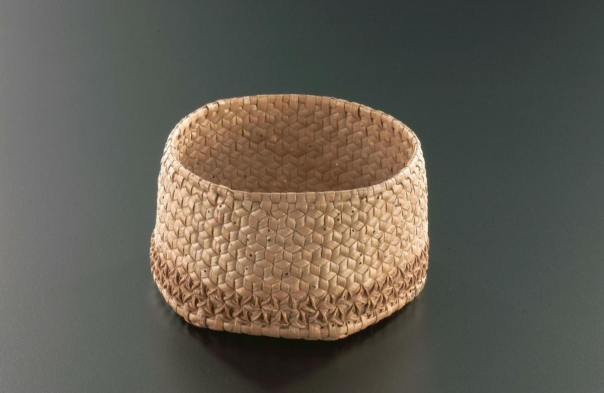 This basket was built on a round coiled base that graduates in size from bottom (smallest in diameter) to the shoulder (largest in diameter) of the container. Rattan forms the basic structure and rattan splits are used to hold the coiling together. Used by the Ifugao people for storing rice grains.