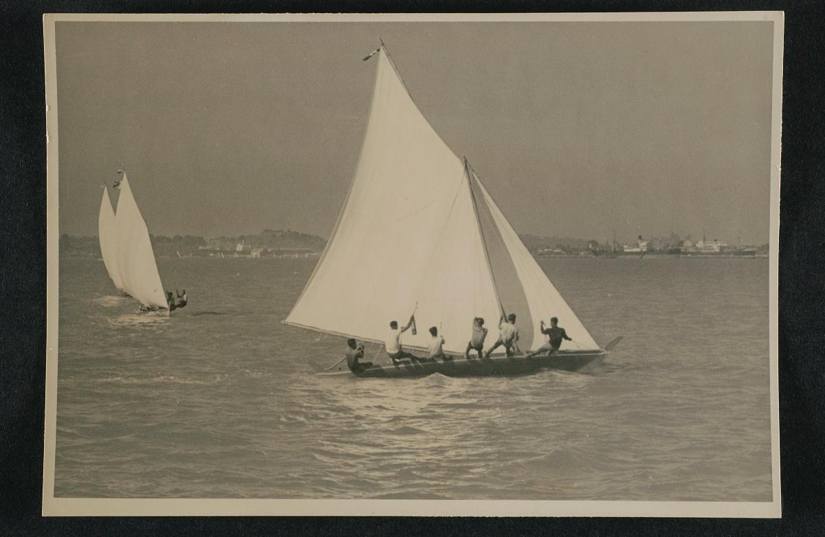 Taken in a seaside kampong, this picture shows a shipbuilder surrounded by curious children. Shipbuilders in those days were valued for their skills and quality work, made more remarkable by the fact that they picked up knowledge and skills passed down by word of mouth from generation to generation.