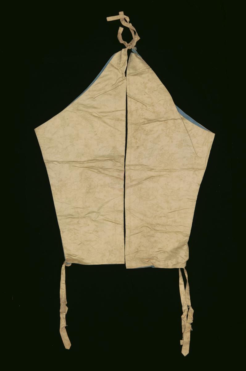As the bride was required to fold her hands in front of her when offering prayers and paying respect to the elders, this pair of detached sleeves or forearm attachments were slipped one over the other on her folded arms to cover them. It is such that a continuous band of colour was formed.