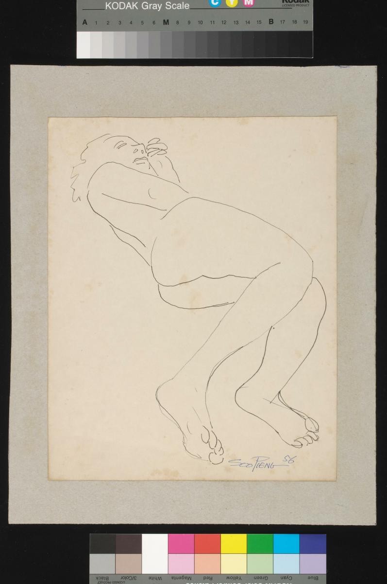 Born in 1933 in Singapore, Tan Choo Kuan was trained in Western Art at Singapore’s Nanyang Academy of Fine Arts. A dedicated art teacher and prolific artist, Tan’s legacy was recognised in October 2005 with the Singapore Art Museum’s acquisition of 74 select sketches and drawings on paper completed between 1953 and 2005.As a member of Group 90 and with his strong European stylistic aesthetics, Tan was committed to studying the (naked) human body in order to master depicting the human form in drawing. The human body in all its complexity, variety and flexibility, offers the artist an unlimited source of material and inspiration from which to draw. Here, Tan has sketched the reclining nude model with her head thrown back, dense long hair cascading down her back in contrast with her outlined form. This work was included in ‘Paintings of Tan Choo Kuan’ catalogue published in 2000.